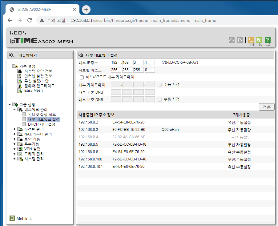 1. 메인 ipTIME공유기 설정