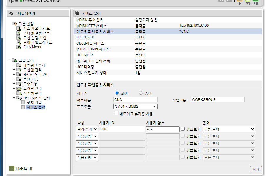-윈도우 파일공유 서비스 : 읽기/쓰기 \\CNC/1004
